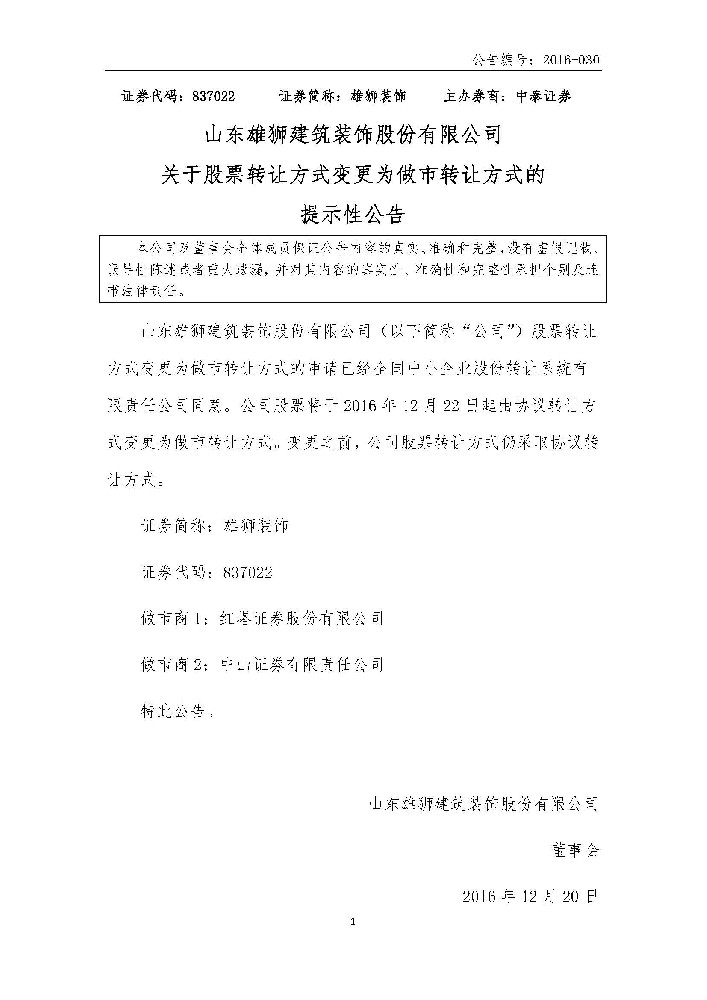 下一篇:[臨時公告]雄獅裝飾_關于股票發行新增股份掛牌并公開轉讓的公...