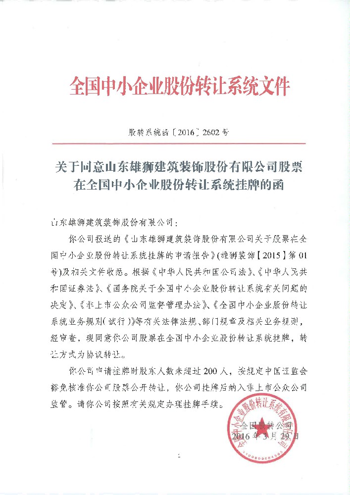上一篇:[臨時報告]雄獅裝飾_關于公司股票將在全國股份轉讓系統掛牌公開轉讓的提示性公告